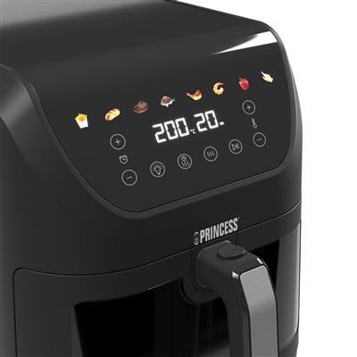 The Princess 182476 SlimFry Airfryer offers a smart way to enjoy your favorite dishes in a healthier way. Thanks to its slim design, it easily fits on your countertop, making it ideal for smaller kitchens or limited countertop space. Despite its compact size, this airfryer has a generous 8-liter capacity, perfect for cooking for multiple people. Additionally, the powerful 2000W motor and the convenient viewing window allow you to cook quickly and efficiently without opening the airfryer and losing heat or time. Bake, fry, or grill without excess fat or oil. The airfryer is easy to operate thanks to the digital display.