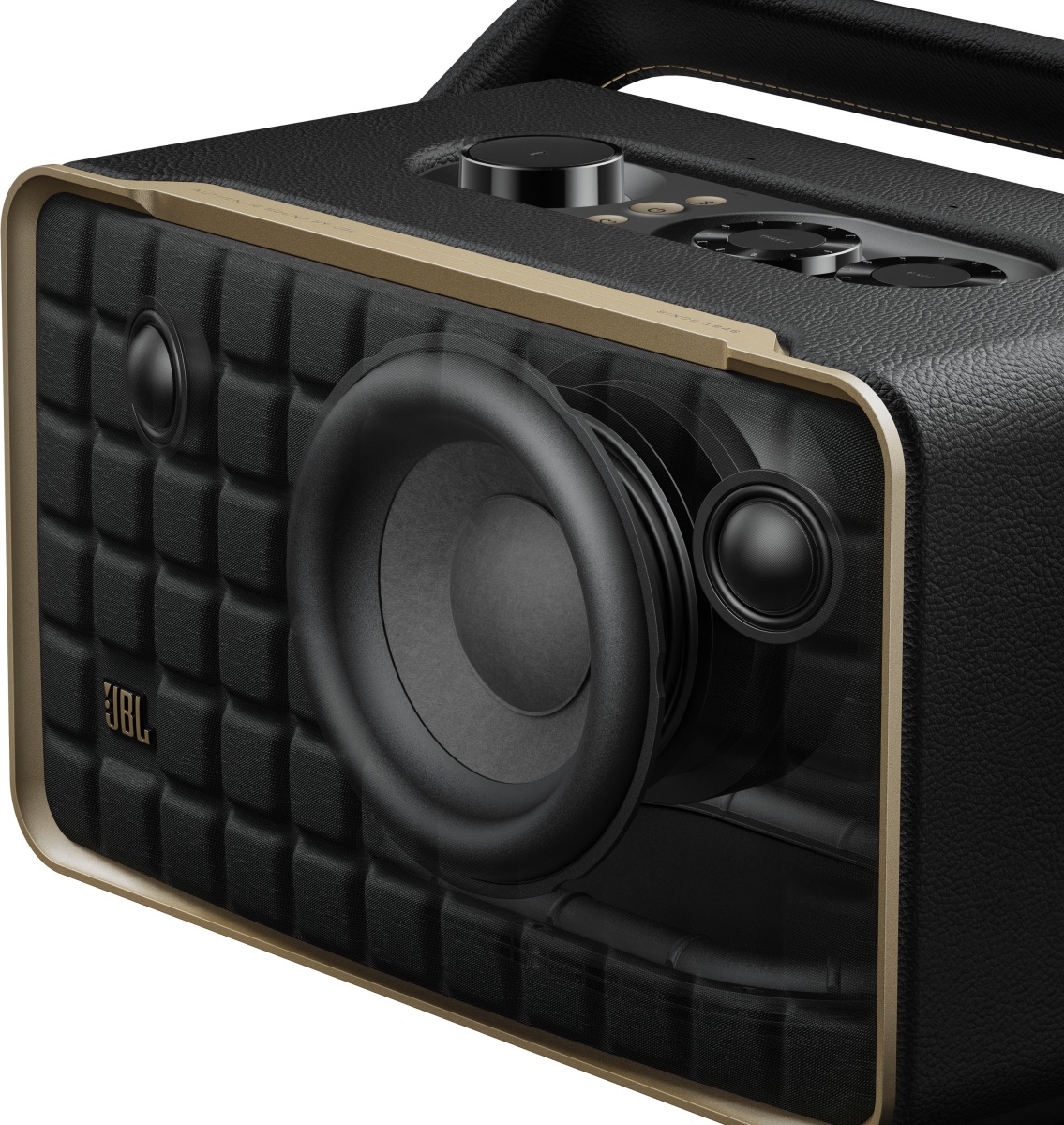 The JBL Authentics 200 is inspired by classic JBL heritage designs for a look that complements any room and fills any space—big or small with superior JBL sound. And the speaker’s premium aluminum frame, custom leather-like enclosure, and reimagined Quadrex grille really show the attention we paid to each visual detail, right down to the JBL signature pattern surrounding the down firing passive radiator.