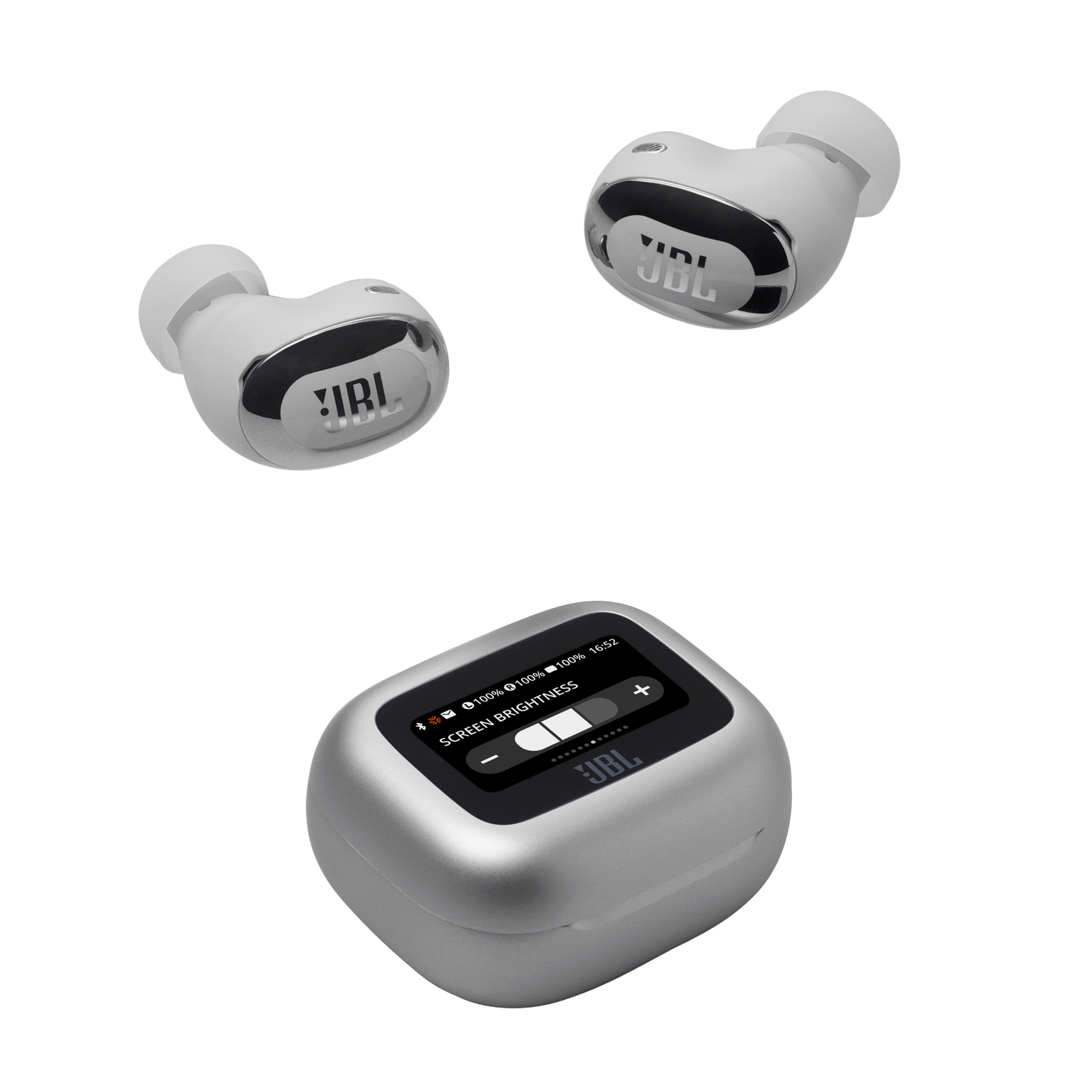 Get customized sound without even looking at your phone. Use the controls on the Smart Charging Case™ of the JBL Live Buds 3 true wireless noise-cancelling earbuds with Hi-Res Audio to customize all of their features without having to open the JBL app on your device. Adjust volume and EQ, control your music, take phone calls, see messages—you can even customize the screensaver with your favorite photos. And that’s before you even get to the monumental JBL Signature Sound of the Live Buds 3 themselves. Best-in-class True Adaptive Noise Cancelling tunes out distractions. JBL Spatial Sound makes movies and music truly immersive. And if you have to take a call, 6 mics ensure perfect sound quality even in the noisiest surroundings. All this, plus a 40-hour charge: 10 hours in the buds* and another 30 in the case—and they can charge wirelessly. The charging case features a loop to attach a lanyard for even more convenience. Great sound has never been simpler. (*with ANC off)