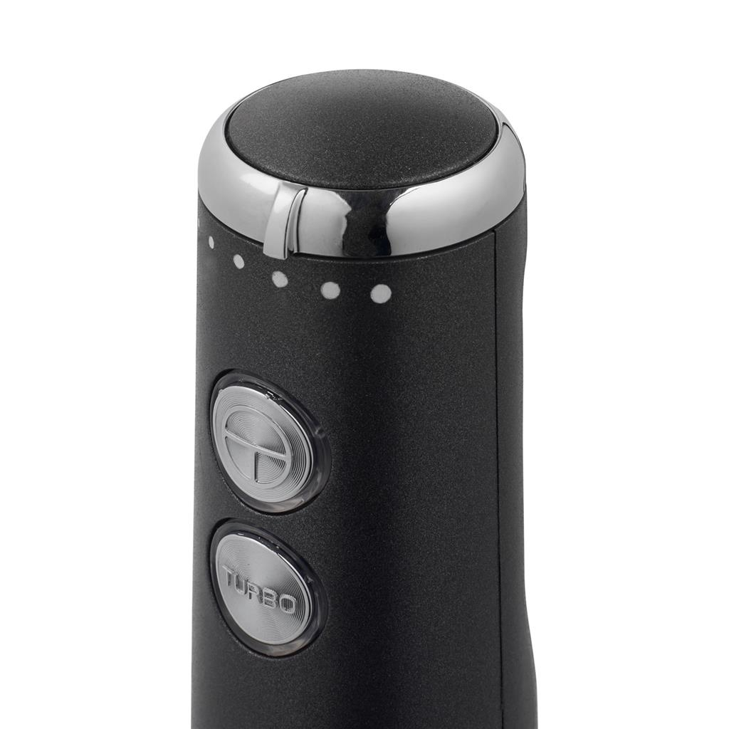 The ergonomic handle, containing the two adjustment knobs, lies well in one hand. In addition, the speed can be easily adjusted, so you are always in control of the perfect blend. This hand blender also has a turbo function, making it easy to puree hard food. Operating a hand blender has rarely been so easy.