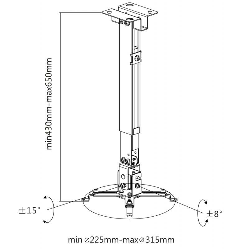 | Adjustable height range | 43-65 cm (ceiling installation) / 35-56 cm (wall installation) |